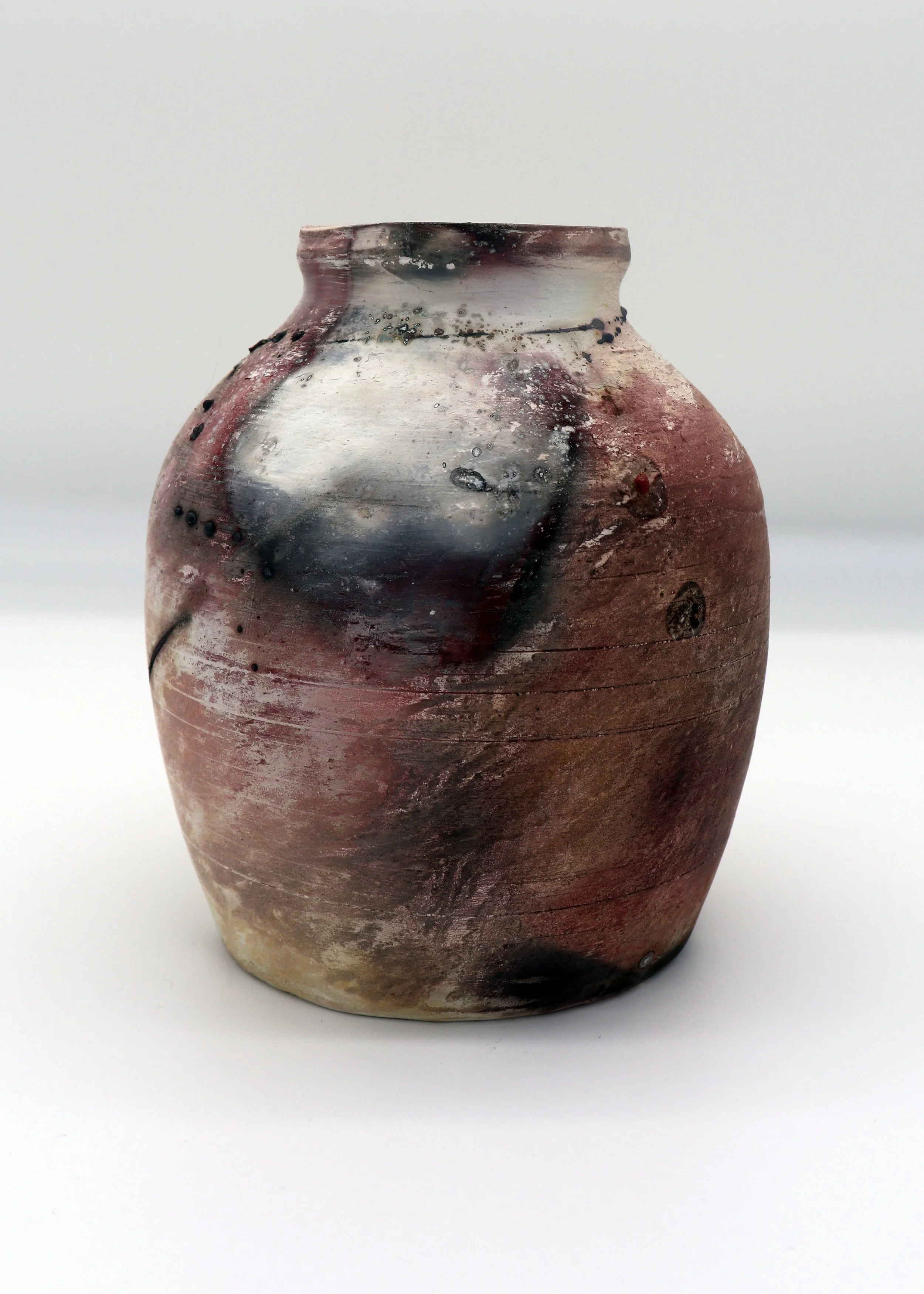 Slide 1 Slide 1 (current slide) Slide 2 Slide 2 (current slide) Slide 3 Slide 3 (current slide) Jars, Pit-fired ceramic, 2023.Not for sale. Previous Next Ceramics