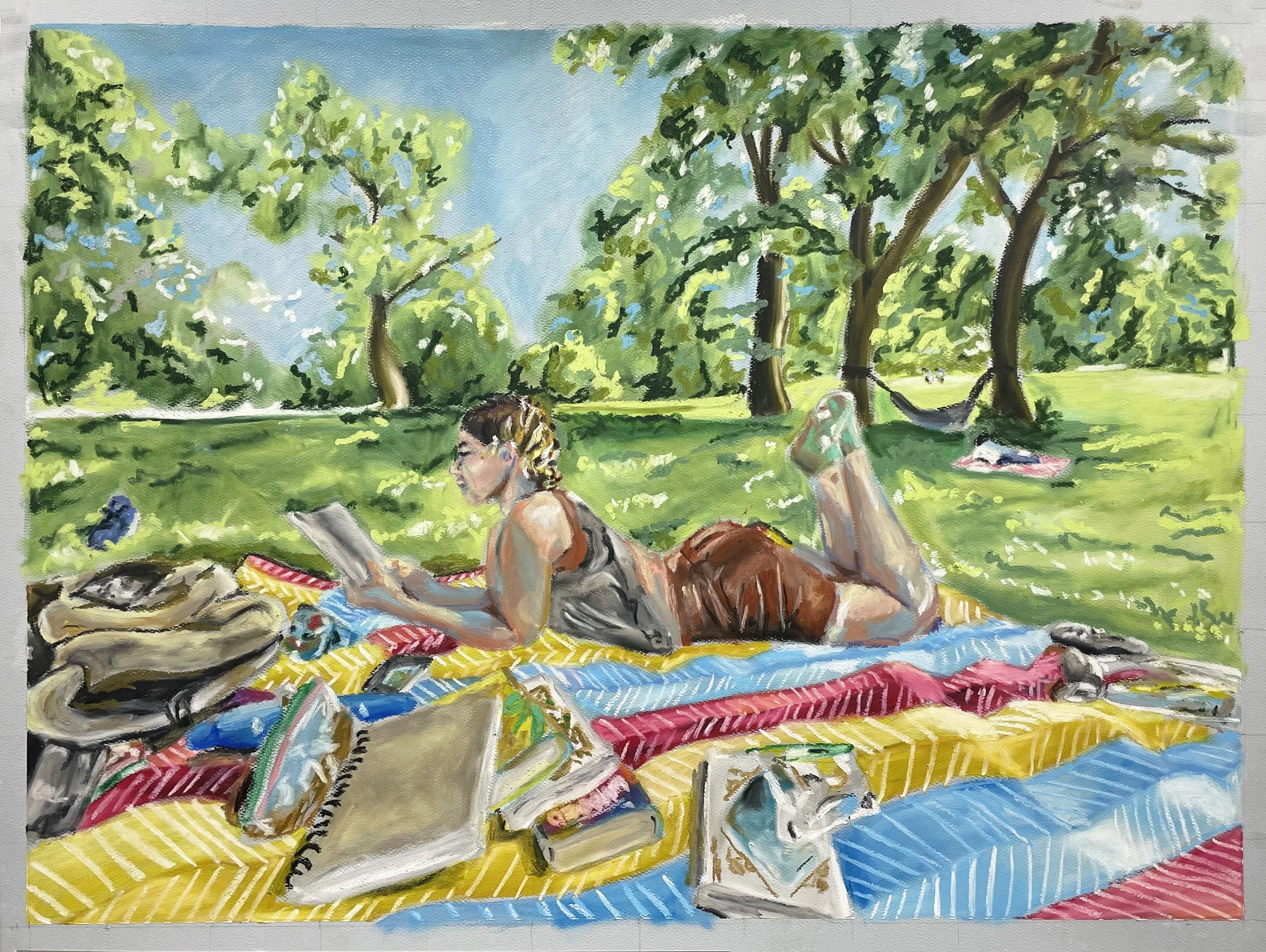 Afternoon Reading, Oil Pastel, 18in x 24in, 2022.